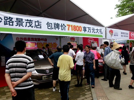 景茂寶駿4S店的商務手動包牌價很是吸引眼球,展位這邊風頭無兩。喂喂,不要太過分哦……