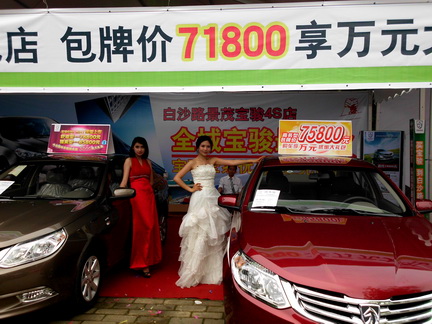 我們的車還沒開到齊,新款的自動擋就被眼尖的車友發(fā)現(xiàn)了。雖然沒有準備好,我們的工作人員依然耐心的向車友展示寶駿630 1.5AT的魅力。