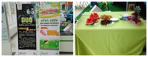 “購車,獲取陳奕迅演唱會(huì)的門票”和端午節(jié)特賣會(huì)的易拉寶一黑一白很是醒目。
