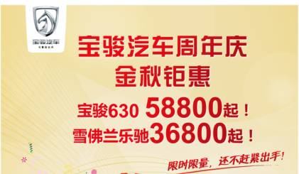 4、驚喜禮:寶駿630特價車驚喜價58800元起,經(jīng)典雪佛蘭36800元起!