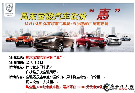 相信大家都知道于12月1日至2日汽車、裝飾、建材、家居搶購會將在柳州體育中心東門盛大舉行。汽車展區(qū)又是重中之重,而在汽車展區(qū),景茂寶駿4s店作為耀眼的一環(huán)將會為柳州市民帶來一場實惠的購車盛宴。不論是我們的溫馨愜意的展廳還是在氣氛熱烈的汽車展區(qū),只要您喜歡的場合就有我們始終恭候您到來的身影。