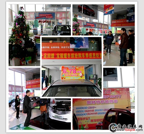 圣誕將至,為了回饋廣大顧客對(duì)景茂寶駿的支持與厚愛,景茂寶駿于22~25日展開了一場(chǎng)別開生面的溫情優(yōu)惠活動(dòng),2012歡樂圣誕寶駿團(tuán)購PARTY火熱進(jìn)行中,此次活動(dòng)以寶駿630 1.5標(biāo)準(zhǔn)版67800包牌的全城*低價(jià)來回饋廣大龍城市民,吸引了來自柳州和周邊地區(qū)的人們前來選車購車。