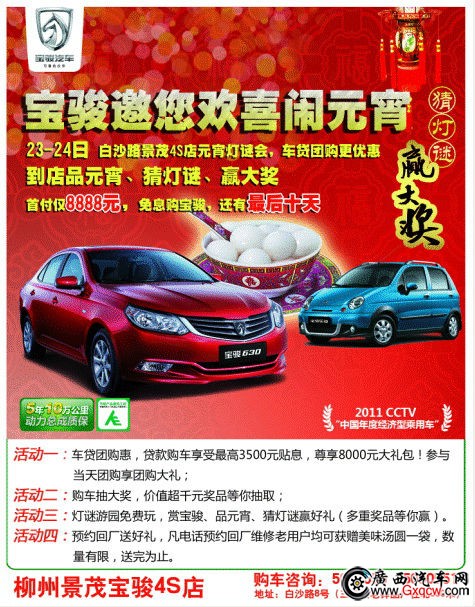 2月23-24日,白沙路景茂寶駿店特推出“寶駿同樂元宵燈謎會”活動。