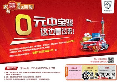 3月22-24日,東環(huán)路李寧體育館旁,柳州市第六屆(龍城)汽車交易會即將火熱開啟。屆時景茂將攜多款超炫時尚改裝寶駿車參展,同時推出多項超值優(yōu)惠套餐。另外,只要到達(dá)現(xiàn)場的朋友,參與“家有喜事我送寶駿”線下活動,將有機(jī)會免費贏取“寶駿630”汽車一輛。0元開寶駿,不是夢想!機(jī)不可失哦!