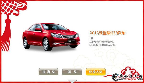 最終大獎將獲得寶駿630一臺。所有參與的網(wǎng)友都有機會獲得這次抽獎機會。