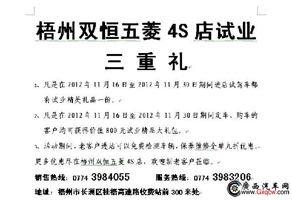 梧州雙恒五菱4S旗艦店試業(yè)三重禮