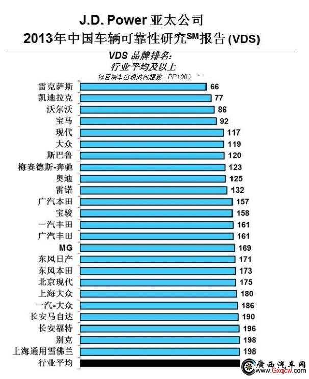 近日,J.D.Power(**性的市場(chǎng)資訊公司)發(fā)布的“2013年中國(guó)車(chē)輛可靠性研究(VDS)報(bào)告”正式出爐。在參與調(diào)研的59個(gè)品牌中,前10名均為進(jìn)口品牌,寶駿汽車(chē)排名第12位,榮登自主品牌可靠性榜首,同時(shí),寶駿樂(lè)馳斬獲緊湊型細(xì)分市場(chǎng)冠軍。憑借品牌、車(chē)型可靠性雙料冠軍,寶駿汽車(chē)成為本次J.D.Power“中國(guó)車(chē)輛可靠性研究”的大贏家。