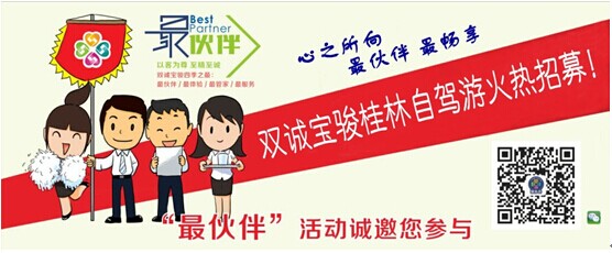 旅行,就是讓心可以有一個棲息的地方;自駕,就是讓夢想可以有一個起飛的方向。趕快拿起你的電話,撥打0772-8803806報名汽貿(mào)園雙誠寶駿桂林自駕山水之行,帶上你的家人,帶上你的伙伴,遠離喧囂忙碌的城市,一起回歸山水讓幸福升級!