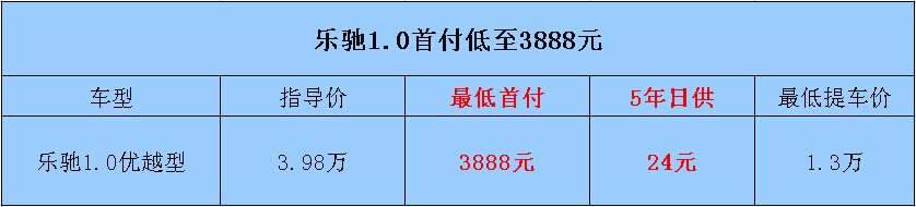 3888元買不了Iphone 6,但能輕松首付貸寶駿樂馳回家!經(jīng)典版樂馳,抄底首付僅需3888元,最低提車價僅需1.3萬!