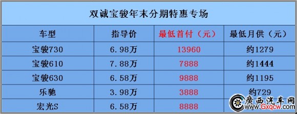 樂馳首付3888元起,宏光S首付8888元起,寶駿630首付9888元起!寶駿610首付7888元起!寶駿730首付1.4萬元起!寶駿630/寶駿610指定型分期“免費”用一年!12期0利率、最低日供30元不是夢!