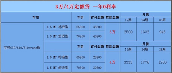 汽貿(mào)園雙誠寶駿特重磅推出寶駿630及寶駿610特惠車型,貸3萬分期一年可享受0利率優(yōu)惠,愛車給您“免費(fèi)”用一年!