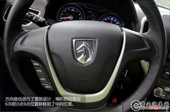 寶駿610的方向盤看上去顯得更加飽滿,同時(shí)造型設(shè)計(jì)也有加入一些柔軟的曲線,看上去很舒服。寶駿610提供多功能方向盤,按鍵布置在方向盤左下方。