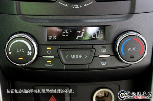 自動(dòng)恒溫空調(diào)系統(tǒng),按鈕和旋鈕的手感和阻尼都處理的不錯(cuò)