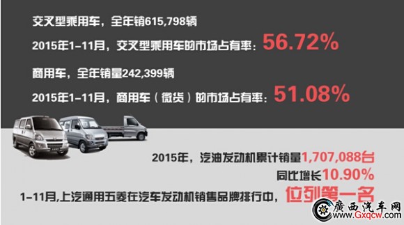 與此同時,在傳統(tǒng)微車市場連續(xù)5年下滑的情況下,上汽通用五菱預(yù)計仍以超過55%的市場份額,進一步鞏固在該領(lǐng)域的領(lǐng)導(dǎo)地位。其中,交叉型乘用車2015年累計銷售615,798輛,1-11月市場份額達56.72%;商用車2015年累計銷售242,399輛,1-11月市場份額達51.08%。