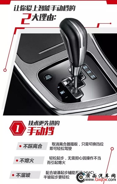 寶駿560智能手動(dòng)檔直接輕推換擋桿即可換擋,告別了傳統(tǒng)手動(dòng)擋的機(jī)械式換擋模式,完全解放駕駛者的“左腳”。在擁堵路段只需松開剎車踏板,便可蠕動(dòng)行駛;同時(shí)在坡起路段,配合坡道起步輔助系統(tǒng)(HHC),當(dāng)車輛處在坡道時(shí),松開剎車,車輛仍保持剎車狀態(tài)2秒左右,駕駛員有足夠的時(shí)間去控制油門踏板起步,避免發(fā)生明顯的溜車情況,半坡起步更為輕松。所以,無論你是駕駛生疏的新手還是技術(shù)嫻熟的老司機(jī),寶駿560智能手動(dòng)檔都可以讓你輕松駕馭。