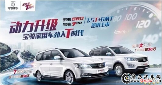 寶駿730 1.5T+6MT 7座家用車,進入T時代,超實力,超性價,超舒適 ;寶駿560 1.5T,高顏值SUV,動力配置升級,更強,更快,更省。