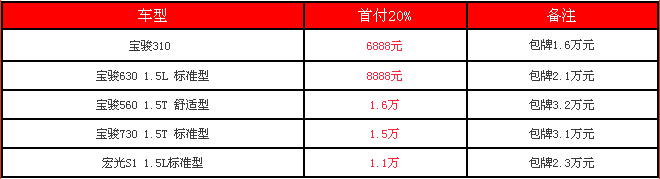 寶駿310首付低至6888元,