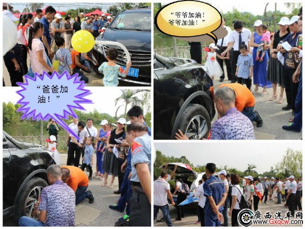 備受車主們期待的“換備胎大賽”開(kāi)始啦,先由技師對(duì)寶駿560智能手動(dòng)檔實(shí)車進(jìn)行現(xiàn)場(chǎng)講解及演練:如何正確更換備胎,然后,每隊(duì)派出兩名代表,親自實(shí)地操作,比賽誰(shuí)換備胎又快又準(zhǔn)。操作的車主緊張激烈地比賽,旁邊的加油聲也是此起彼伏,連小朋友也忍不住為自己的爺爺、爸爸加油鼓氣呢!