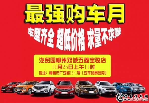 11月25日,汽貿(mào)園柳州雙誠五菱寶駿店,超強(qiáng)購車月,抄底限時團(tuán)購會!價(jià)格低到?jīng)]朋友禮品拿到手抽筋(車型齊全 超低價(jià)格 求量不求賺)!
