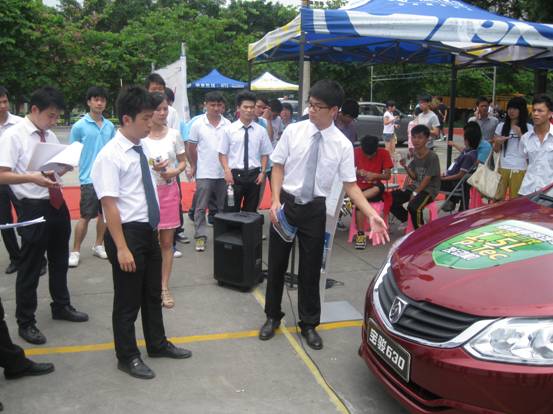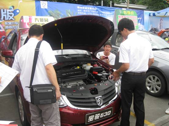 車展現(xiàn)場,寶駿汽車還有幸被評為:“汽車銷售技能競賽展示車型”,銷售實習(xí)員正認(rèn)真學(xué)習(xí)呢