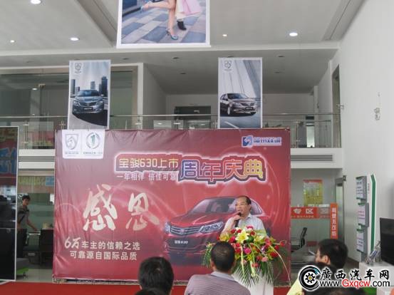 柳州汽貿(mào)園雙誠寶駿4S店總經(jīng)理為寶駿630上市一周年慶生會致辭