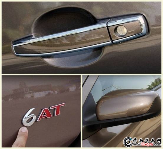 寶駿630 1.8車門把手的鍍鉻裝飾令這款車型更華麗、更有檔次。尾部6AT標(biāo)識(shí)是1.8L身份象征。加長(zhǎng)的廣角外后視鏡更可減少視覺(jué)盲點(diǎn),在駕駛時(shí)可以體會(huì)到并線時(shí)的實(shí)用性。