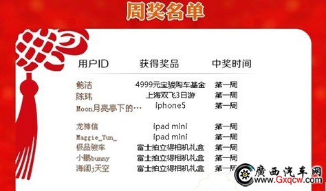 寶駿汽車近期推出的“家有喜事 我送寶駿”大型網(wǎng)絡互動活動已經(jīng)開展兩周多,4月2日,第二批批周獎獲獎名單已經(jīng)揭曉,4999元寶駿購車基金、上海雙飛3日游及眾多時尚數(shù)碼大禮又落入8位幸運網(wǎng)友囊中,4月9日第三批的幸運兒又是誰呢,看別人中獎不如自己也參與其中吧!
