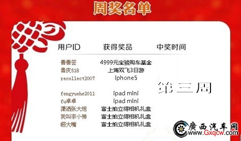 寶駿汽車推出的“家有喜事 我送寶駿”大型網(wǎng)絡(luò)互動活動已經(jīng)開展至第三周,4月9日,第三批周獎獲獎名單已經(jīng)揭曉,4999元寶駿購車基金、上海雙飛3日游及眾多時尚數(shù)碼大禮又落入8位幸運(yùn)網(wǎng)友囊中,大家一起來分享他們的喜訊!