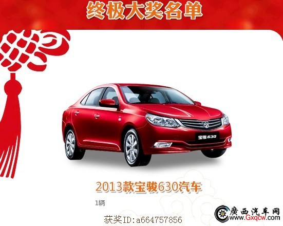 寶駿汽車為回饋新老客戶發(fā)起了“家有喜事我送寶駿”全民報(bào)喜活動(dòng)從3月20日舉辦至4月20日已經(jīng)宣告結(jié)束,終極大獎(jiǎng)2013款寶駿汽車一輛已經(jīng)揭曉,恭喜這位幸運(yùn)的朋友;顒(dòng)舉行以來豐富的獎(jiǎng)品比如上海風(fēng)情雙飛3日游、寶駿購(gòu)車基金,和N多的時(shí)尚電子數(shù)碼產(chǎn)品都吸引了無數(shù)的朋友關(guān)注和參與到這次網(wǎng)絡(luò)活動(dòng)當(dāng)中,關(guān)注寶駿汽車有時(shí)得大獎(jiǎng)就是這么容易。