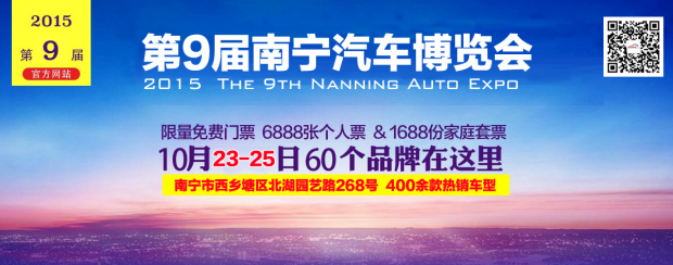 2015惠民車展——第九屆南寧汽車博覽會將再次撼動綠城,一場車展界的饕餮盛宴將拉開序幕!2015第九屆南寧汽車博覽會10月23日開幕,展會為期3天:10月23日-10月25日,近60個(gè)參展品牌,涵蓋豪華車進(jìn)口車合資車熱銷車各個(gè)領(lǐng)域。品牌多,車型全,現(xiàn)場開價(jià),保證低價(jià),現(xiàn)場訂購,還送大禮!10月23日-10月25日我們恭候您的到來!