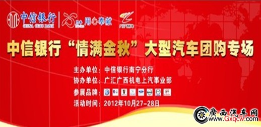 10月27-28日,在雙擁路中信銀行大廈前廣場(chǎng),將舉行中信銀行專場(chǎng)團(tuán)購(gòu)會(huì),10幾個(gè)一些汽車品牌共同參展,東風(fēng)日產(chǎn)南寧弘天專營(yíng)店攜東風(fēng)日產(chǎn)旗下主力車型鉅惠回饋,驚喜連連。**承諾:“安全保障承諾”,為400萬(wàn)新老車主保駕護(hù)航!