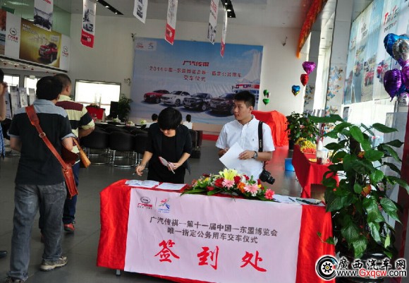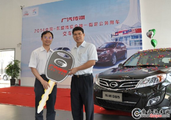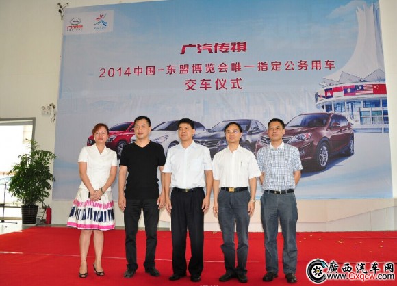 2014年9月5日,第十一屆中國-東盟博覽會指定用車交車儀式在廣西南寧廣汽傳祺迅利店內(nèi)舉行,廣汽傳祺汽車向東盟博覽會組委會交接傳祺GA5、GS5等在內(nèi)的共計100輛指定貴賓接待用車。這也是自2011年起,廣汽傳祺汽車作為“中國-東盟博覽會乘用車合作伙伴”,連續(xù)4年為這一具有國際影響力的經(jīng)貿(mào)交流盛會**提供貴賓接待用車,F(xiàn)場廣汽傳祺梁總、中國東盟博覽會領導及各大媒體預祝:第十一屆中國-東盟博覽會取得圓滿成功!