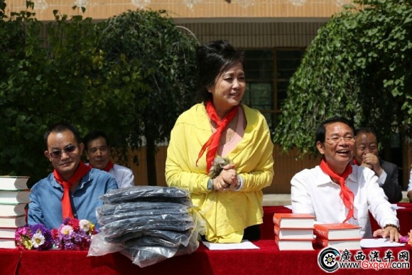 (圖1:齊豫女士走進(jìn)校園進(jìn)行愛(ài)心捐贈(zèng))