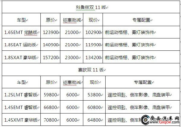 注:雙11版車型不參與柳州五億雪佛蘭其他優(yōu)惠活動(dòng)
