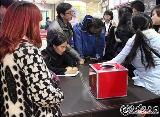 前來(lái)參加活動(dòng)的車主們簽到換票