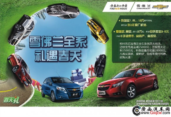 說到自駕旅行,有車是關鍵。據悉,雪佛蘭2月27日-3月31日啟動“春天禮”促銷活動,全系車型均有超值優(yōu)惠。其中科魯茲1.8L僅需12萬即可入手,同時科魯茲全系或掀背車:購車即贈送2年原廠機油。小車組合愛唯歐、賽歐享受18個月超長零利率禮遇。如此利好,相信聰明的消費者一定不會錯過!