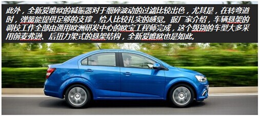 全新愛唯歐在操控性與舒適性表現(xiàn)均衡,在城市低速駕駛時(shí),給人感覺輕便靈活,而在高速路段時(shí),方向盤的轉(zhuǎn)向較為沉穩(wěn),其穩(wěn)定與速度讓你的駕駛信心飆升。值得一提,全新愛唯歐的輪距相比同級車來說要寬一些,加上車重也更高,所以在穩(wěn)定性上的優(yōu)勢是很明顯的。整體來說,全新愛唯歐不但能輕松滿足年輕人對一輛城市代步車的動(dòng)力需求,更可以為他們帶來富有激情的駕駛體驗(yàn)。