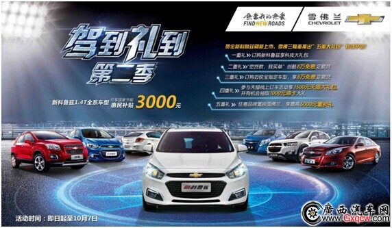 據(jù)悉,即日起至10月7日,到柳州五億雪佛蘭4S店購買雪佛蘭科魯茲家族(2014款新科魯茲、經典款科魯茲、科魯茲掀背車)中的任意一款車型,都將得到我們?yōu)槟憔臏蕚涞捏@喜大禮。而已于8月下旬刷新亮相的全新一代科魯茲、深受年輕人青睞的新生代城市SUV創(chuàng)酷以及明星B級車型邁銳寶更將以豐厚的禮包、超值的貸/購車政策為更多年輕人及其家庭帶來驚喜。