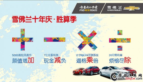 (2015年3月31日)把握當(dāng)下,即時(shí)享受,是新新人類最具時(shí)代特點(diǎn)的消費(fèi)觀。在進(jìn)入中國(guó)市場(chǎng)十周年之際,雪佛蘭品牌將于4月1日起攜全系車型推出“雪佛蘭十年慶·勝算季”多重感恩回饋,用“加減乘除”四大法,把“賬”算在明處,將實(shí)實(shí)在在的優(yōu)惠送給懂生活、愛生活的年輕人。