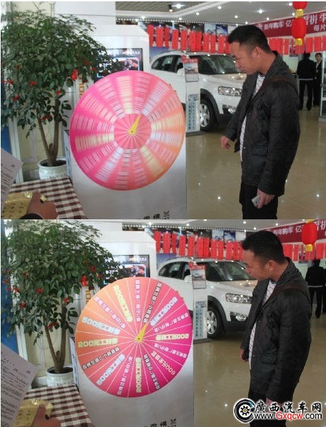 在五億雪佛蘭元宵節(jié)活動(dòng)現(xiàn)場(chǎng)場(chǎng)面異;鸨谡箯d掛置了許多燈籠,同時(shí)也有許多燈謎,客戶朋友們紛紛開(kāi)動(dòng)腦筋,猜出謎底領(lǐng)取原廠精美禮品一份。除了品嘗美味的湯圓,試駕有禮,展廳內(nèi)的“元宵幸福大轉(zhuǎn)盤(pán)”也給大家?guī)?lái)歡樂(lè)。在活動(dòng)現(xiàn)場(chǎng)訂購(gòu)車輛的客戶一試身手,精美實(shí)惠的禮品受到大家歡迎,開(kāi)啟蛇年好運(yùn)程!