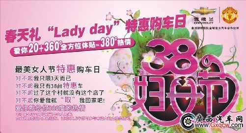 告別了寒冷的冬日,春天的溫暖氣息已悄然而至。伴隨著陣陣春風,最美女人節(jié)即將到來。在2013新的一年里,為了更好地服務廣大消費者,柳州五億雪佛蘭將在3.8女人節(jié)期間舉辦《春天禮―“Lady day”最美女人節(jié)》活動,借此表達對女性消費者的關愛。