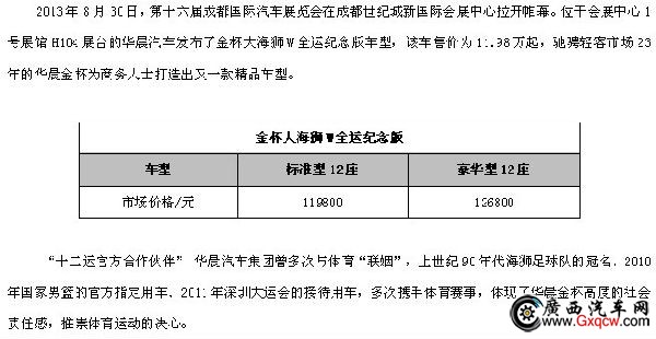 金杯大海獅w全運(yùn)紀(jì)念版 11.98萬起售