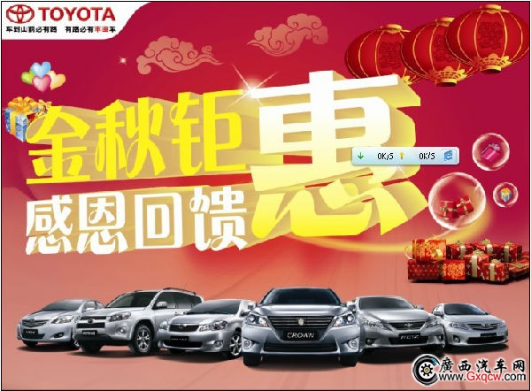為了回報車主對廣西玉林駿業(yè)豐田汽車銷售服務有限公司的支持與厚愛,玉林駿業(yè)豐田10月13日特舉辦“金秋鉅惠感恩回饋”活動,特別推出金秋展廳限時促銷活動,瘋狂特惠引爆購車狂潮!更多好禮送不停,期待您的蒞臨。詳情請咨詢玉林駿業(yè)豐田銷售熱線:2671111。