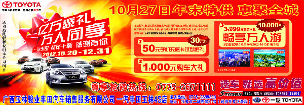 活動(dòng)解釋權(quán)歸廣西玉林駿業(yè)豐田汽車銷售服務(wù)有限公司所有