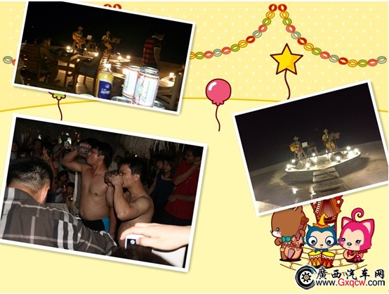 看完表演,除了可以坐在在沙灘吧里聽聽歌,到舞臺(tái)上一展歌喉,還可以參加喝啤酒比賽哦,我們的一個(gè)車友可是得了第三名,不錯(cuò)不錯(cuò),掌聲鼓勵(lì)一下!