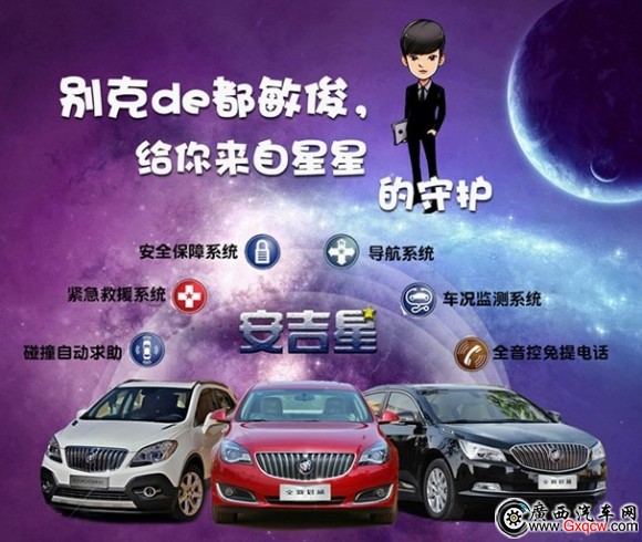 導(dǎo)航系統(tǒng)、車況監(jiān)測系統(tǒng)、安全保障系統(tǒng)、緊急救援系統(tǒng)、碰撞自動求助系統(tǒng)、全音控免提電話系統(tǒng)等等....全時待命,為別克車主提供360度的全方位的隨車服務(wù),給您來自星星的守護(hù)!