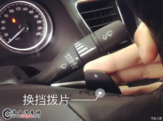 換擋撥片,在方向盤右后方也就是雨刮前面的位置,可以讓駕駛員在雙手不離開方向盤的情況下快速對檔位進(jìn)行切換。