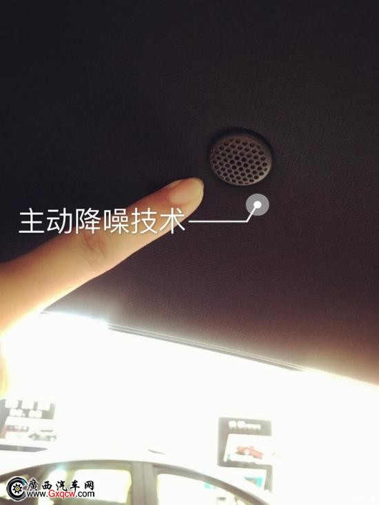 主動降噪技術(shù),通過設(shè)置在駕駛座右上角頭頂處的麥克風(fēng)實(shí)時(shí)偵測發(fā)動機(jī)噪音,然后通過揚(yáng)聲器釋放抵消噪音的反向聲波,從而消除噪音。
