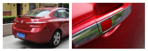 英朗GT的外觀設(shè)計(jì)中除了車頭之外,側(cè)身和車尾同樣毫不怠慢。運(yùn)用了大量的鍍鉻裝飾,良好的質(zhì)感以及光線反射效果,為英朗GT外觀的檔次感增色不少。特別是尾燈上方的燈眉,采用了斜向下的鍍鉻裝飾,與后備箱融為一體,成為英朗GT外觀設(shè)計(jì)中的一抹亮色。還有車身把手的鍍鉻裝飾美觀之外更是提升了頻繁接觸部位的耐磨性能,讓品質(zhì)更好的得以延續(xù)。
