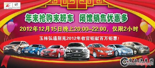 據(jù)了解,在歲末年關(guān)之際,玉林弘通別克4S店為答謝廣大車友對別克汽車的長期支持和厚愛,特在2012年12月15日晚上20:00進行完美收官的閉館銷售會。一次性購車現(xiàn)金優(yōu)惠多,二手車置換和低價貸款購車享受鉅惠外還可享受補貼,各種增值業(yè)務(wù)一條龍服務(wù)???機會難得,限量銷售,僅限2個小時!詳詢玉林弘通別克4S店0775―2295666